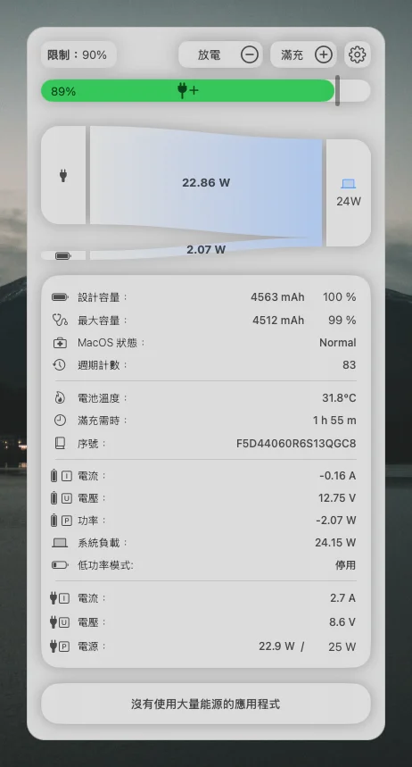 讓你的電池健康保持良好狀態,程式中還能實時查看電源的供應狀態