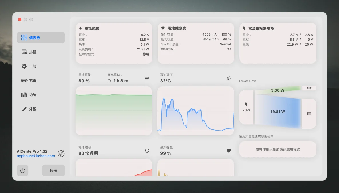 讓你的電池健康保持良好狀態,程式中還能實時查看電源的供應狀態