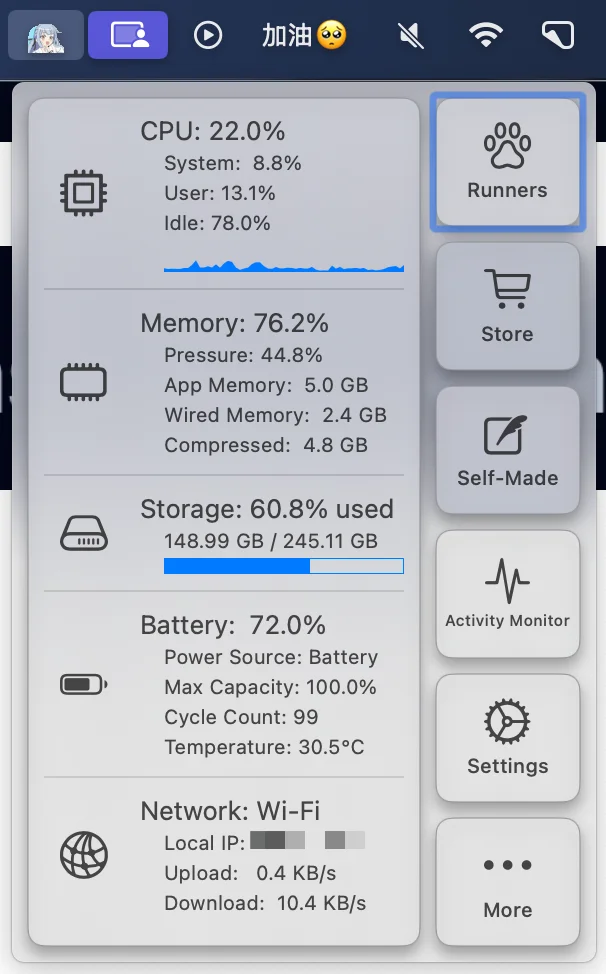 下載連結:https://apps.apple.com/us/app/runcat/id1429033973